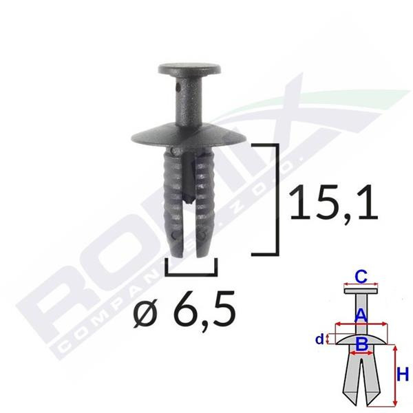 Méretek: A: 14,8 mm B: 6,3 mm C: 7,9 mm D: 2,5 mm H: 15,1 mm Lyuk átmérő: ø 6,5 mm