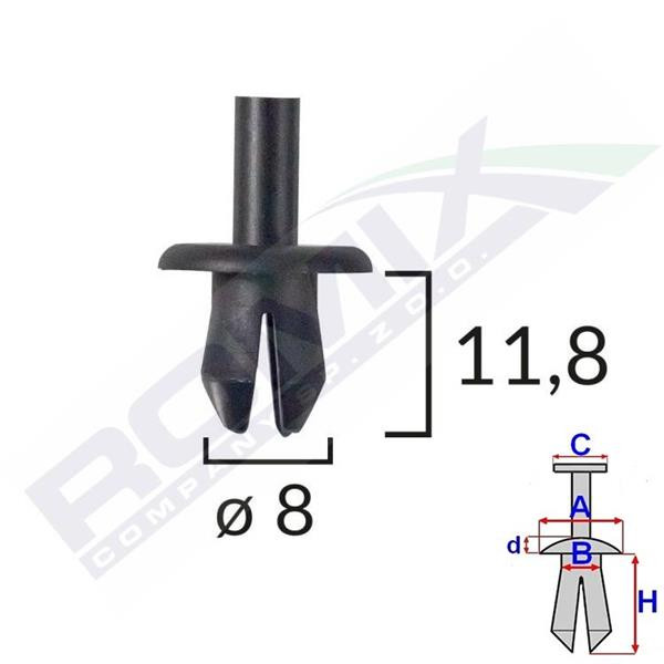 Méretek: A: 16 mm B: 7,9 mm D: 1,9 mm H: 11,8 mm Lyuk átmérő: ø 8 mm
