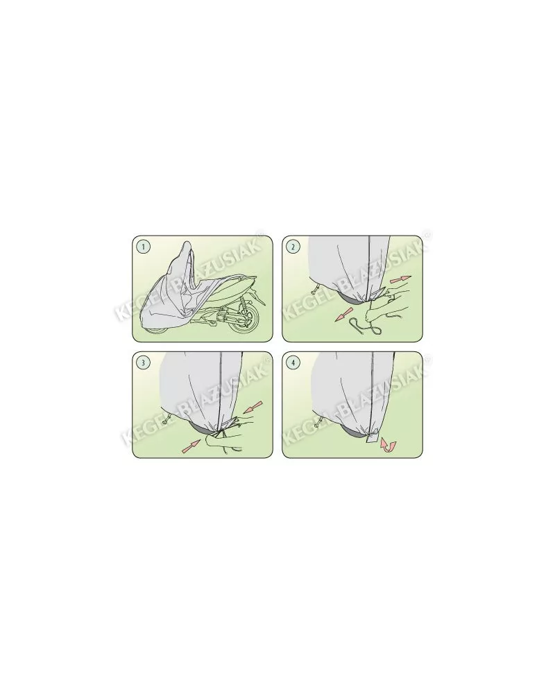 Ponyva - KEGEL Scooter M, robogó vízálló védőponyva. Könnyen telepíthető és leszedhető. Anyag: háromrétegű vízálló, lélegző membrán, UV álló, Ponyva rögzítése: kötéllel, Alkalmas: maximális robogó hossza: 170-185cm, maximális kormány magassága: 124cm, maximális kormány szélessége: 84cm Nem alkalmas a dobozos robogókhoz .