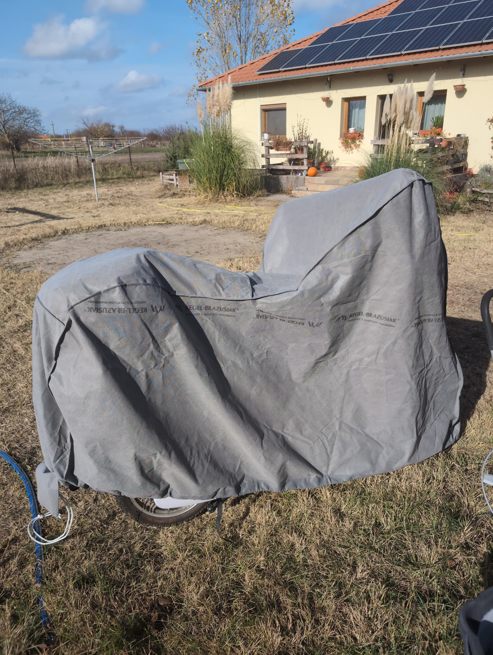 Már volt ilyen ponyvám évekkel ezelőtt, az akkor nem egész két évig bírta a kinti gyűrődést, igazándiból a fagy tette tönkre, némi uv-s segítséggel: a rétegek közé bejutott a víz (pára) és az egyik hidegebb éjszaka megfagyasztotta, ami miatt szétszakadt az anyaga több helyen. Ez a mostani változat kicsit más anyagú, ezért remélem, hogy tovább fogja bírni...