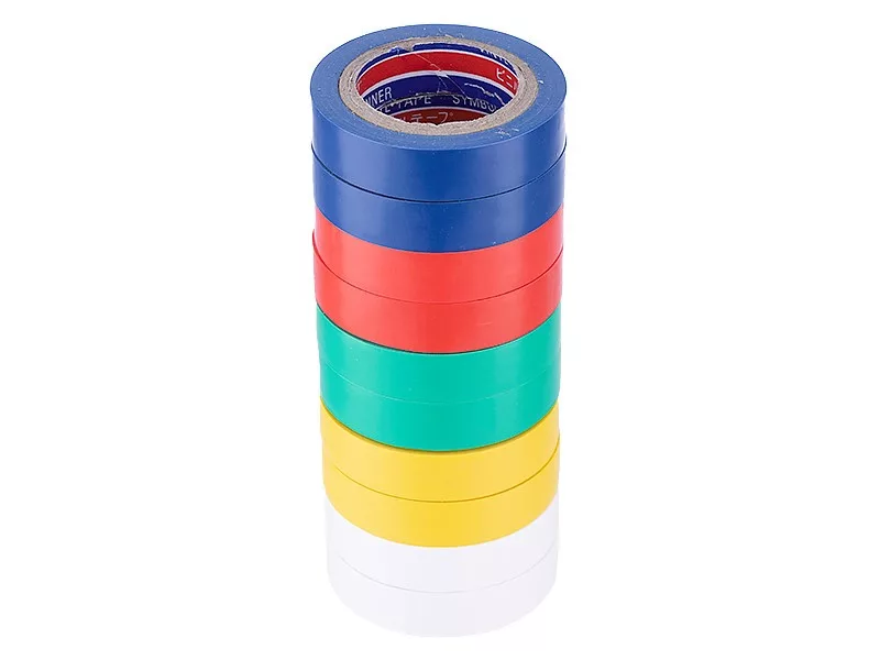 PVC szigetelőszalag 0,13 mm x 15 mm x 20 m, 5 szín, 10 db.