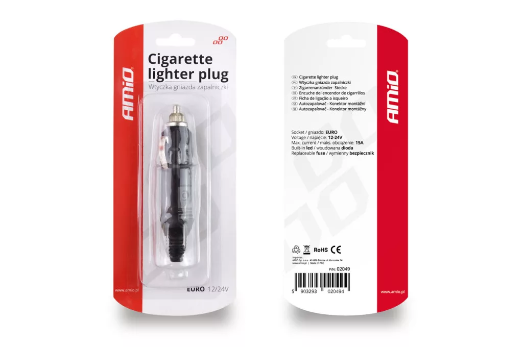 Szivargyújtó dugó biztosítékkal 12/24 Volt EURO – AMIO
