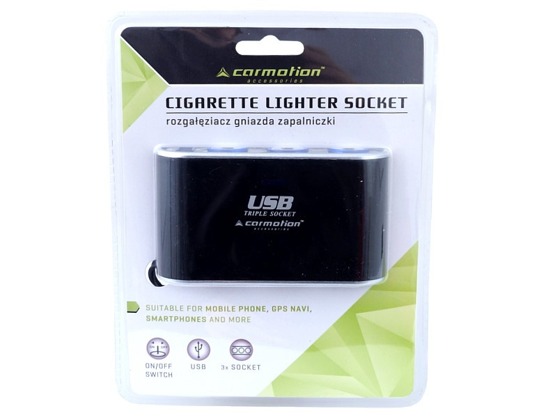 Szivargyújtó elosztó hosszú, nagy szilárdságú kábellel. Ideális 12V-os és 24V-os tápellátású személygépkocsikba való beépítéshez. Beépített 1000 mA-es USB-port, amely többek között a töltéshez telefonok, MP3, MP4. Az elosztó lehetővé teszi több eszköz egyidejű csatlakoztatását (pl. Latop, CB rádió, tablet).
