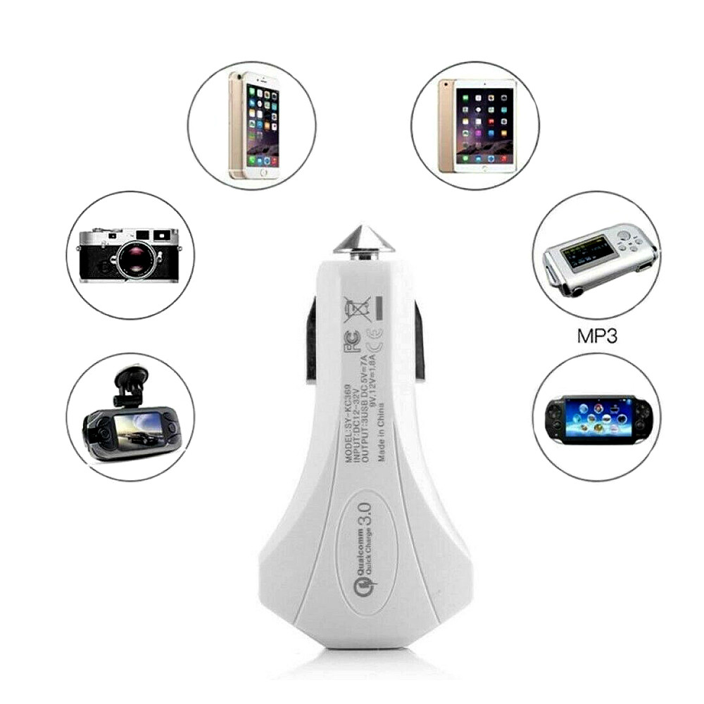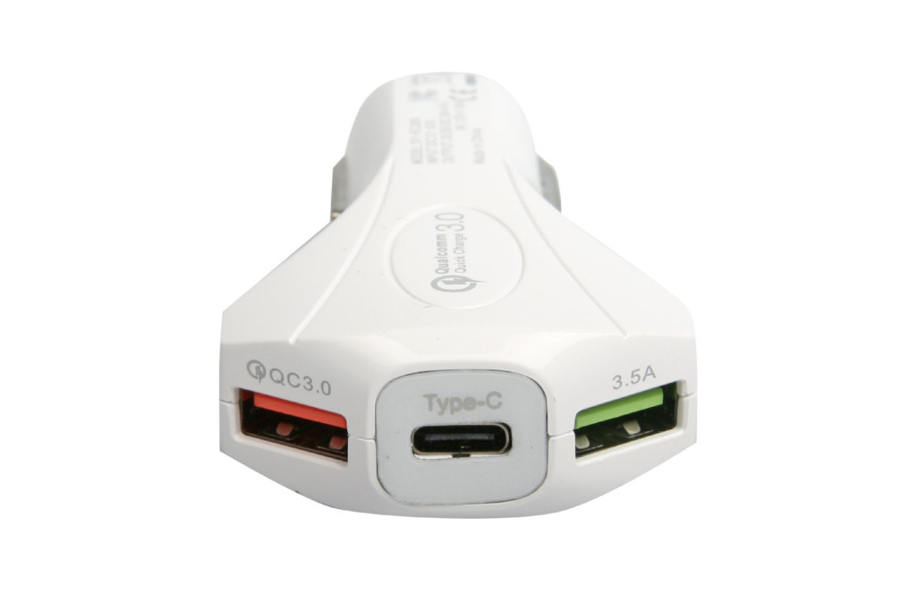 Szivargyújtós gyorstöltő 2x USB + 1x Type-C Qualcomm Quick Charge 3.0