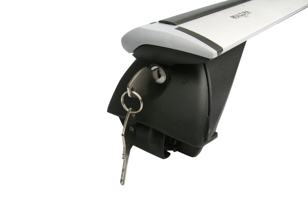 MULTIPA 135 cm széles zárható alumínium tetőcsomagtartó rúdpár, tetősínnel felszerelt autókhoz.Rendkívül egyszerűen felszerelhető, elég a mellékelt imbuszkulccsal rögzíteni vagy oldani a rögzítést.