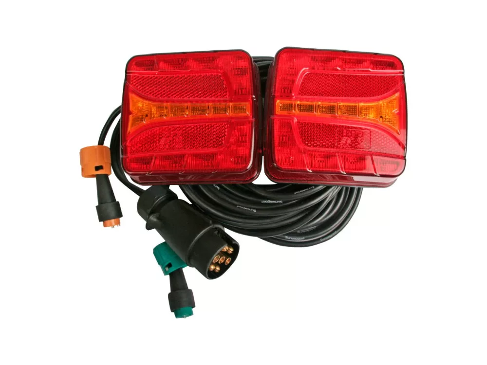 A szett tartalma: 2db hátsó egyesített LED lámpa kábelköteggel és 7-tűs dugvillával