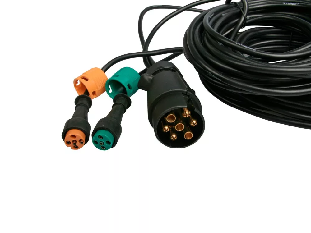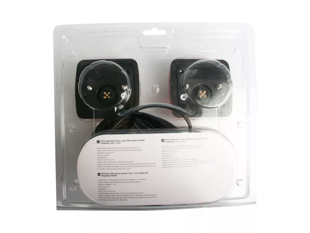 Utánfutó elektromos vezeték lámpákkal, 7-polusú csatlakozóval és 7,5 méter vezetékkel szerelve. A lámpáknál bajonett csatlakozóval.