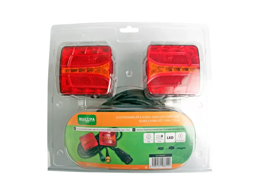 Utánfutó elektromos vezeték 2db LED lámpával 7pólusú / 7,5 m kábel – MULTIPA