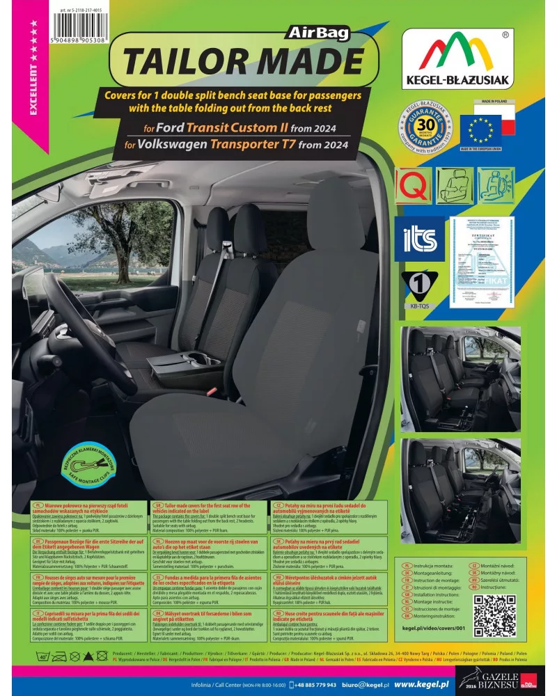 Méretpontos Üléshuzat Volkswagen Transporter T7 jobb első, asztalos ülésre – TAILOR MADE – KEGEL
