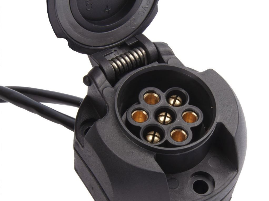 • 7 pólusú műanyag csatlakozó – szabványos megoldás utánfutókhoz, kerékpárszállítókhoz