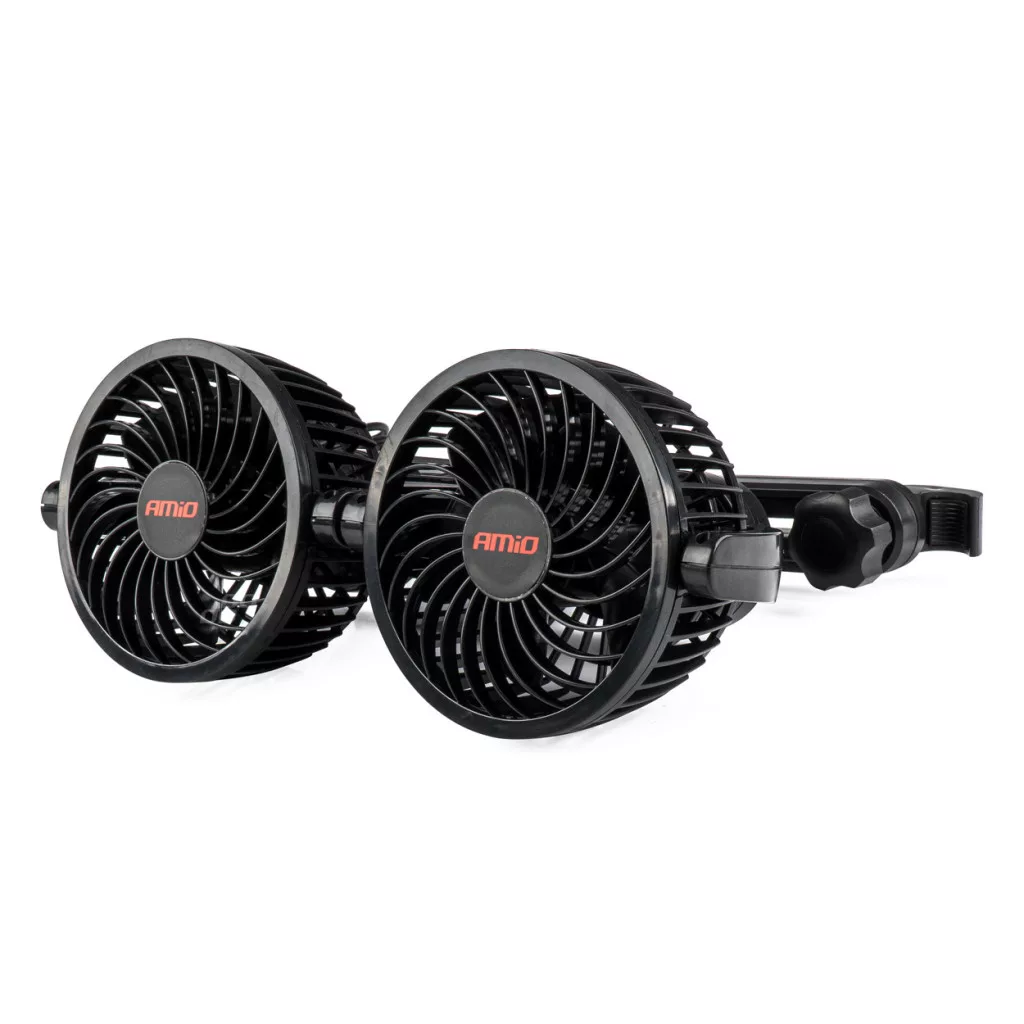 Ventilátor 12V szivargyújtós 2x10 cm (4") átmérőjű állítható rotorral, fejtámlára – AMIO