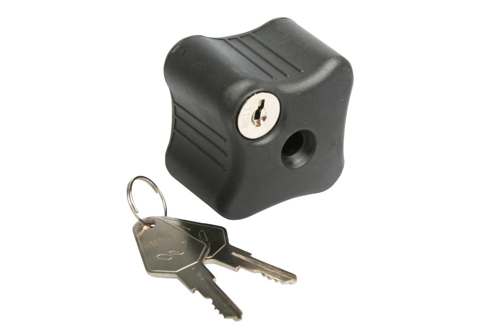 Az összes Menabo kerékpártartóval kompatibilis, M8, segítségével a kerékpárok a tartón lezárhatóak.