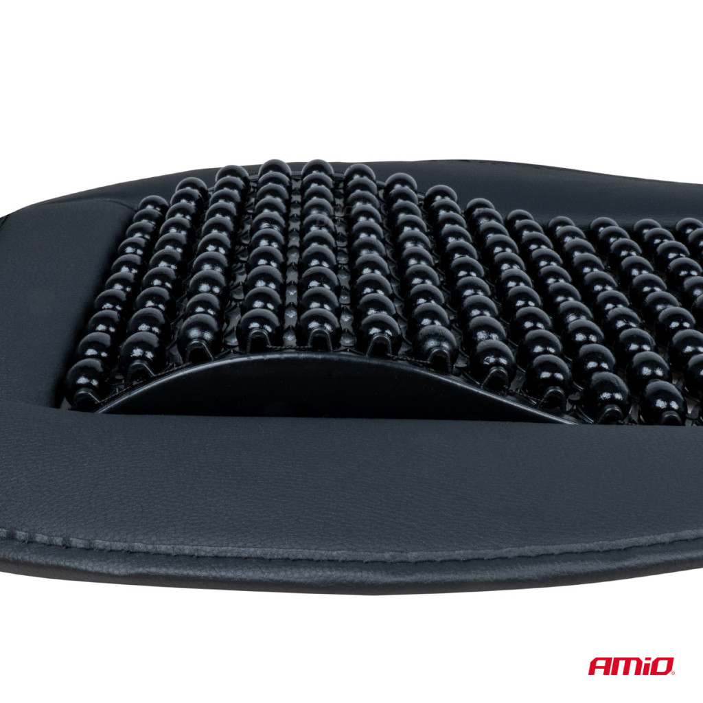 Golyós üléshuzat deréktámasszal és fejtámlával, fekete elegáns bőr – AMIO